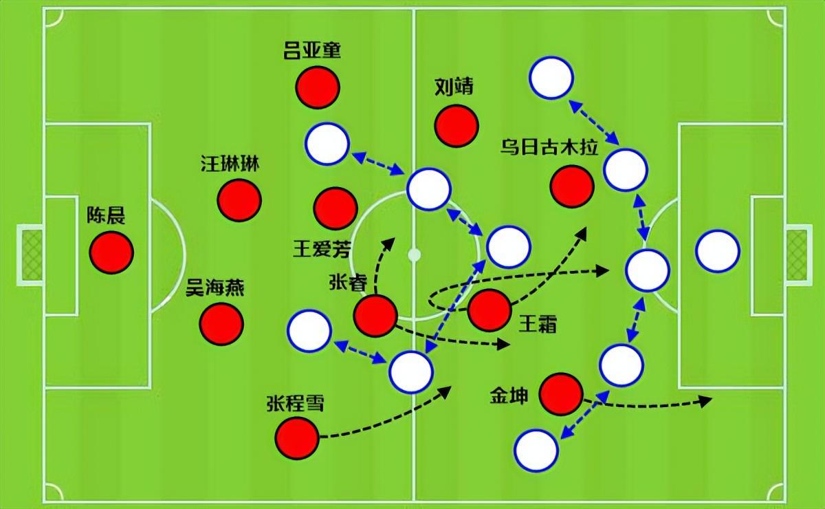 最终的胜利是来自一次后场出球失误,对方反击未果,随后中国女足利用对方中场退防不及时,终于打出了成功的边路推进。