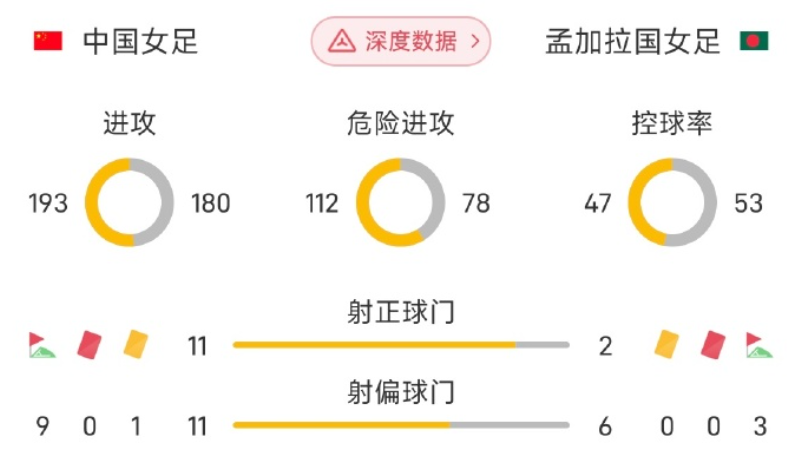 从比赛过程看,孟加拉国女足球员身高都很矮,甚至很多不到1米5。不过她们移动快速、脚下动作频率快,让中国女足的进攻推进在过中圈时会非常难受,后场出球失误太多。